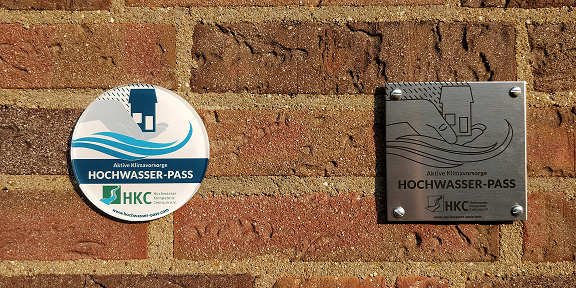 Der Schutz vor Hochwasser und Starkregen wurde zur Eröffnung der Siedlung mit dem Hochwasser-Pass und einer eigenen Plakette besiegelt.